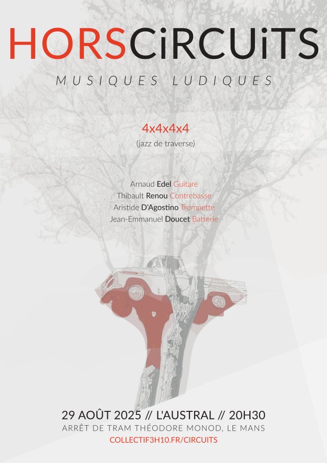 Le Collectif 3h10 vous présente les soirées circuits. Une sorte de laboratoire à ciel ouvert. Des musiciens qui construisent au gré de leur désir les plus fous. De la musique inédite, des hommages, des solos comme des groupes avec plein de gens dedans. On vous embarque à chaque fois pour une nouvelle expérience mais toujours dans la bonne ambiance.